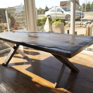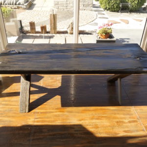 Black Oak bench, base Black Oak and Brushed stainless steel legs
