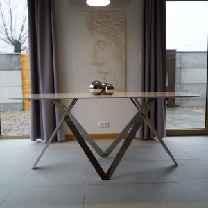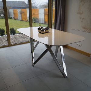 Table Sintered Stone Collection Bianco, Stainless Steel Legs