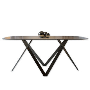 The table top is made of polished quartz sintered “COLECTION BIANCO” with a streamlined shape.